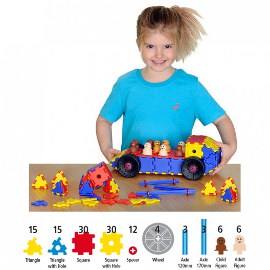 Aquest set d'iniciació Junior és el més nou de Polydron. Les seves 124 peces s'encaixen fàcilment i es mantenen juntes. Està fet de material durador i dissenyat per facilitar la construcció de centenars de fascinants models com cotxes, avions i molts més.