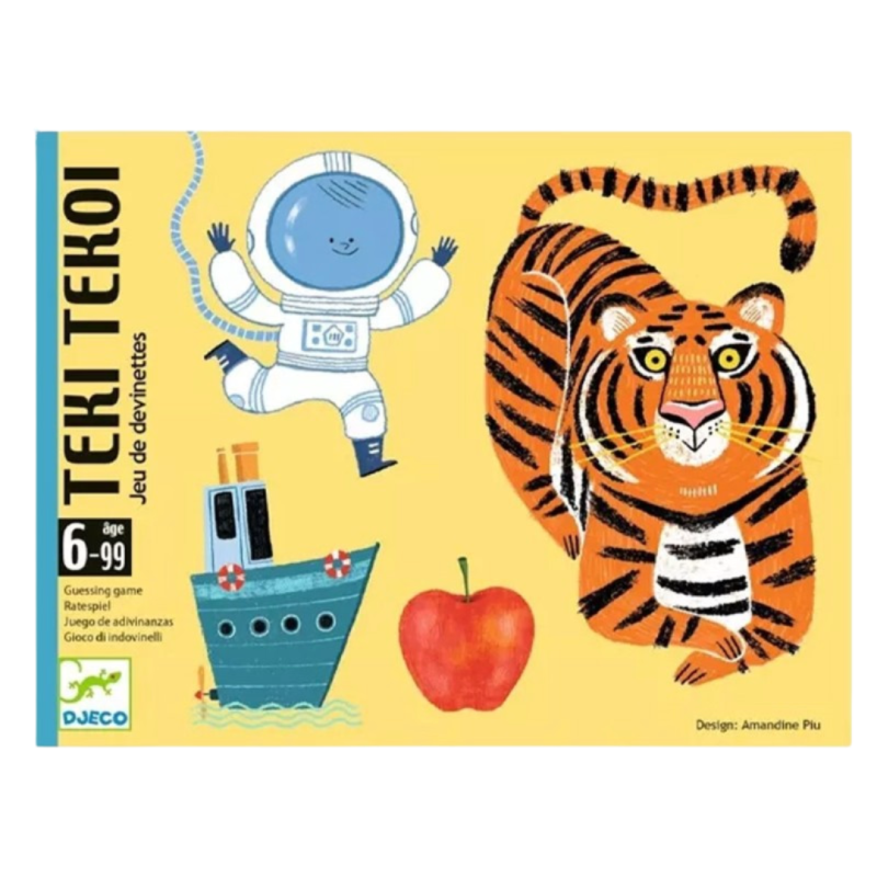 Teki Tekoi de Djeco és un divertit joc d’endevinalles on hauràs de descobrir qui ets abans que la resta. Ets un animal? Alguna cosa amb rodes? Fes preguntes, dedueix i encerta ràpid per guanyar!